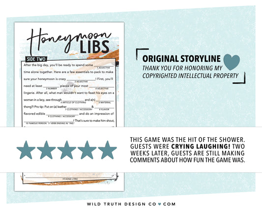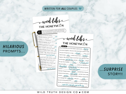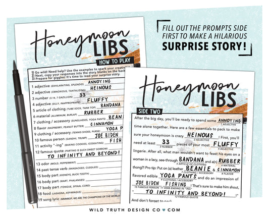 Funny Wedding Mad Libs Game - Honeymoon Story - Elegant