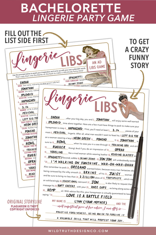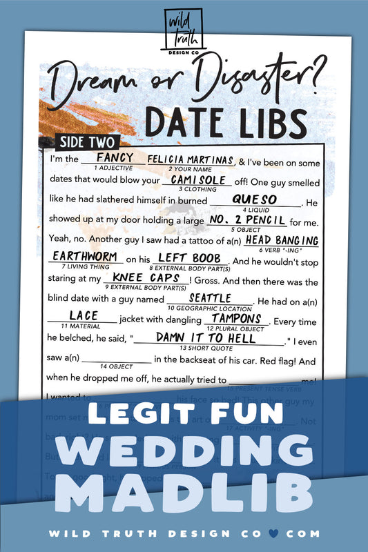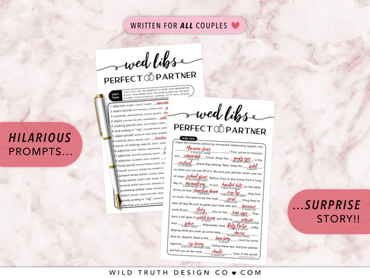 Funny Wedding Mad Libs Game - Perfect Partner Story - Elegant
