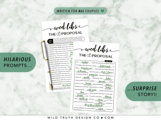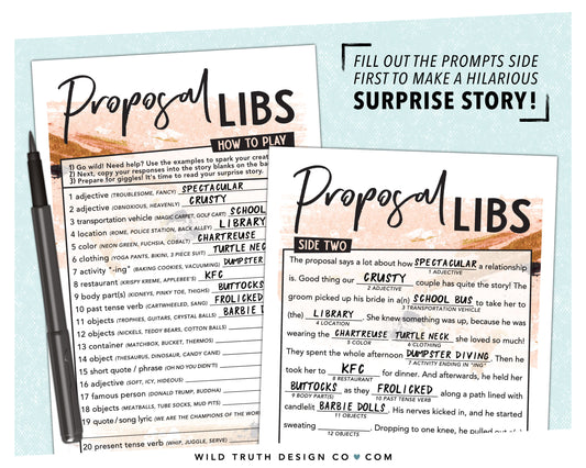 Funny Wedding Mad Libs Game - Proposal Story - Elegant