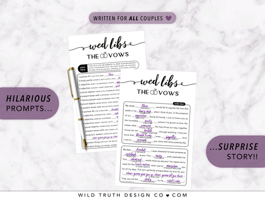 Funny Wedding Mad Libs Game - Marriage Vows Story - Elegant