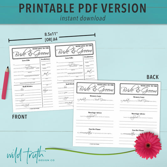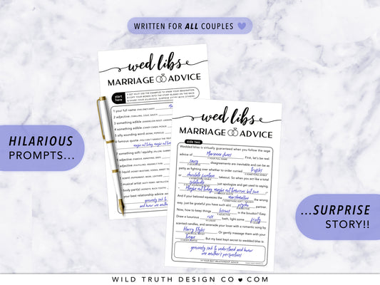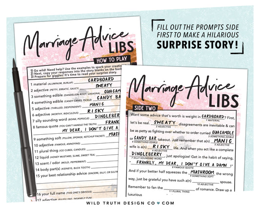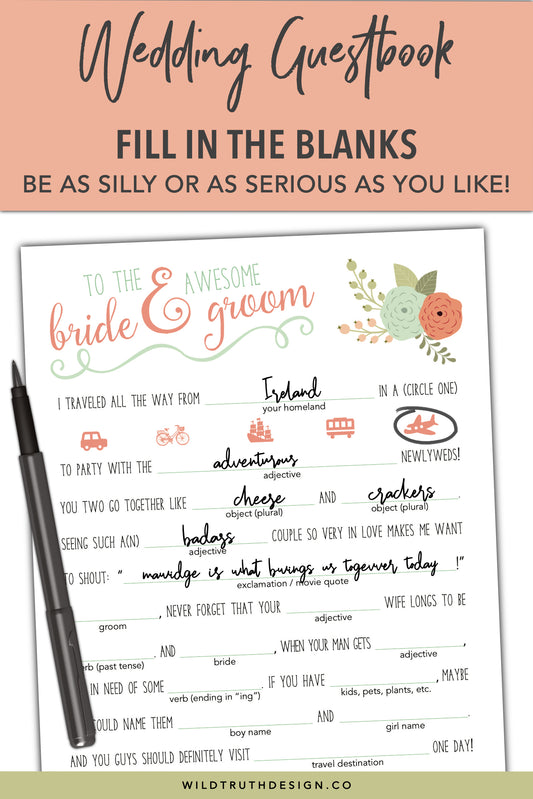 Fun Alternative Wedding Guest Book - Marriage Advice Mad Libs Game - Elegant