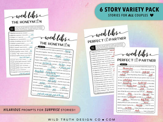 Funny Wedding Mad Libs 6 Game Bundle - Pastel Watercolors