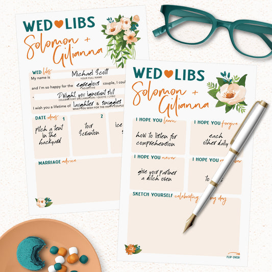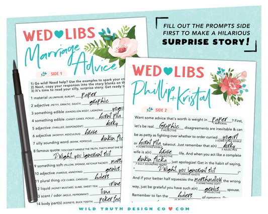 Personalized Wedding Mad Lib Guest Book - Floral Marriage Advice Game