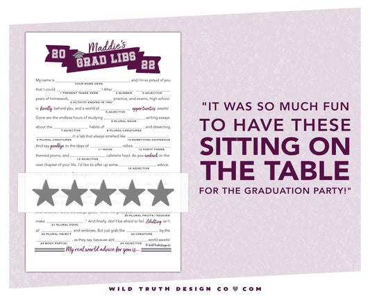 "Grad libs were a hit at my daughter's party. Young & old enjoyed them plus they'll make a fun keepsake." - Tracy W.